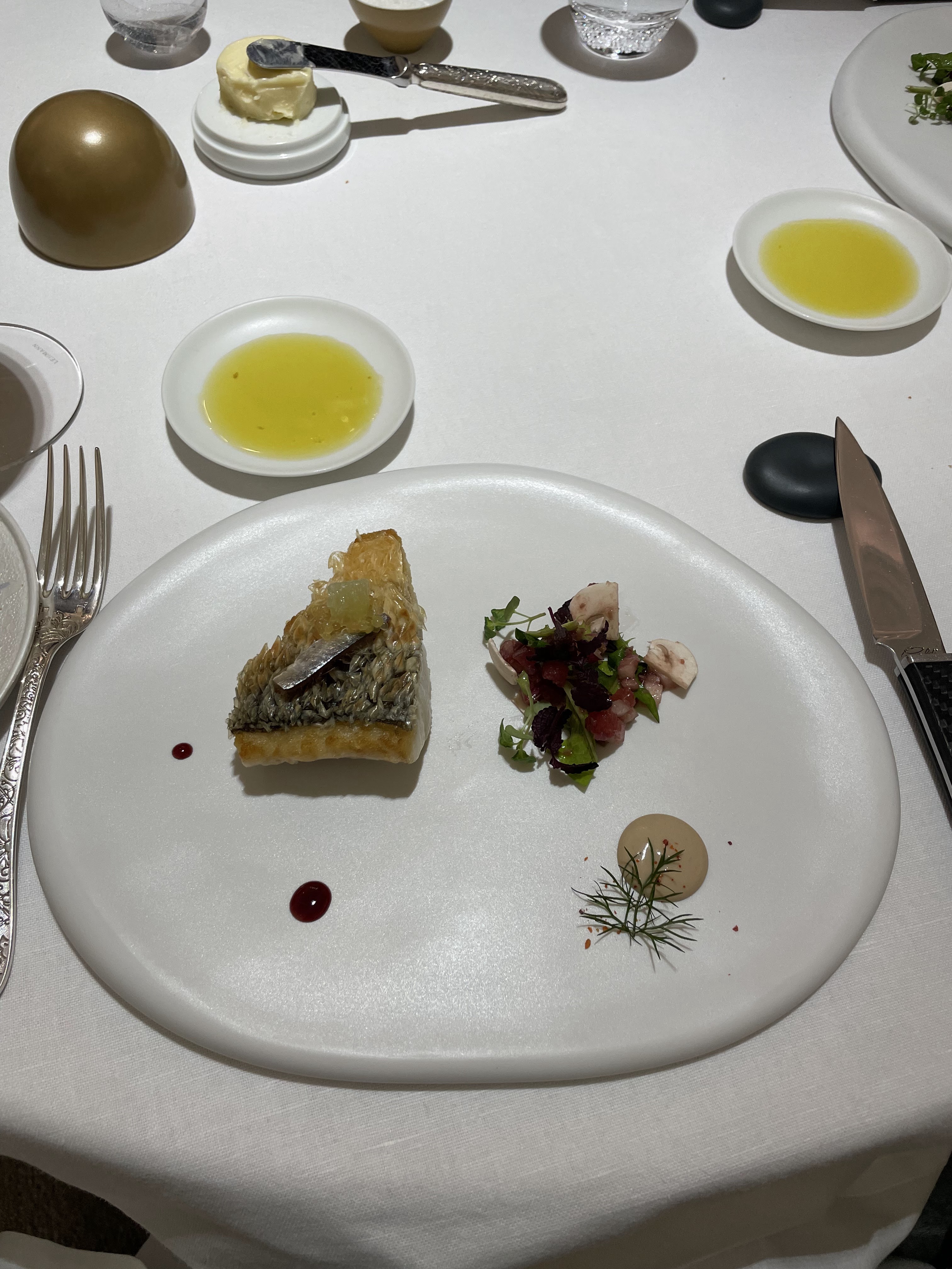 맛있는 식전빵과 버터, 오일 이후에 나온 전채요리입니다.